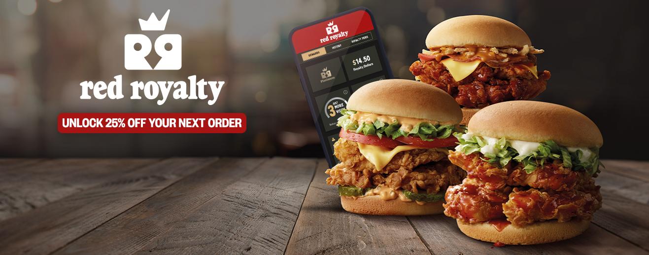 Red Royalty is Red Rooster’s exciting loyalty program! It rewards and recognises our regular customers with special offers as well as Red Royalty Dollars to spend at Red Rooster in restaurant or online.